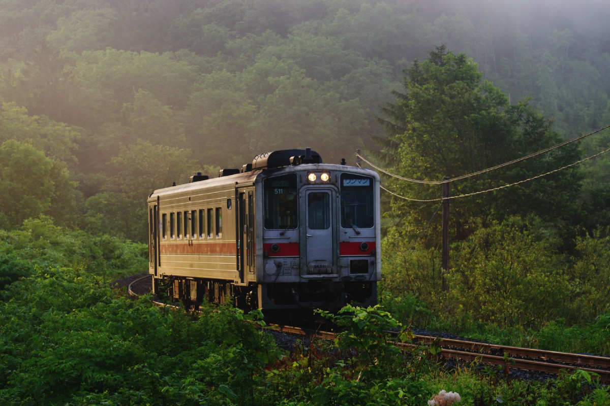 釣り人は海に向けて竿を投げますが、撮り鉄は列車のライトにレンズを向けましょう。道東の夏の早朝は霧が発生しやすく、幻想的な鉄道写真を撮るには絶好のシチュエーションです。釣りと一緒で、鉄道写真の傑作を撮るなら朝が一番の狙い目なのです。