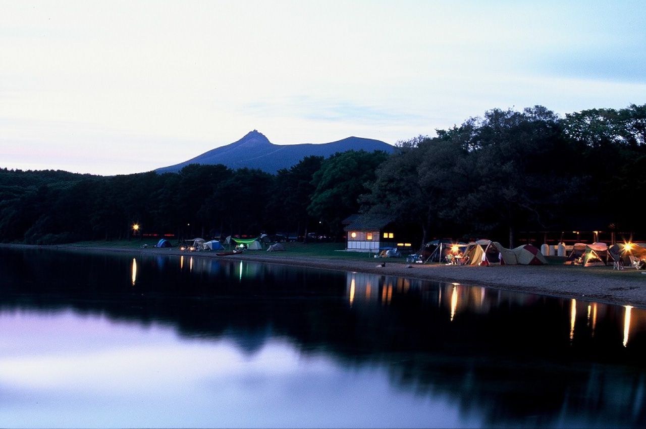 大沼の湖畔に広がる無料のキャンプ場。林間と芝の2種類のフリーサイトがあり、合わせてテント200張りが可能です。2つの炊事場や水洗トイレオムツ換えベッドなど充実の設備は清掃が行き届き、アウトドア初心者でも親子キャンプを満喫できます。
